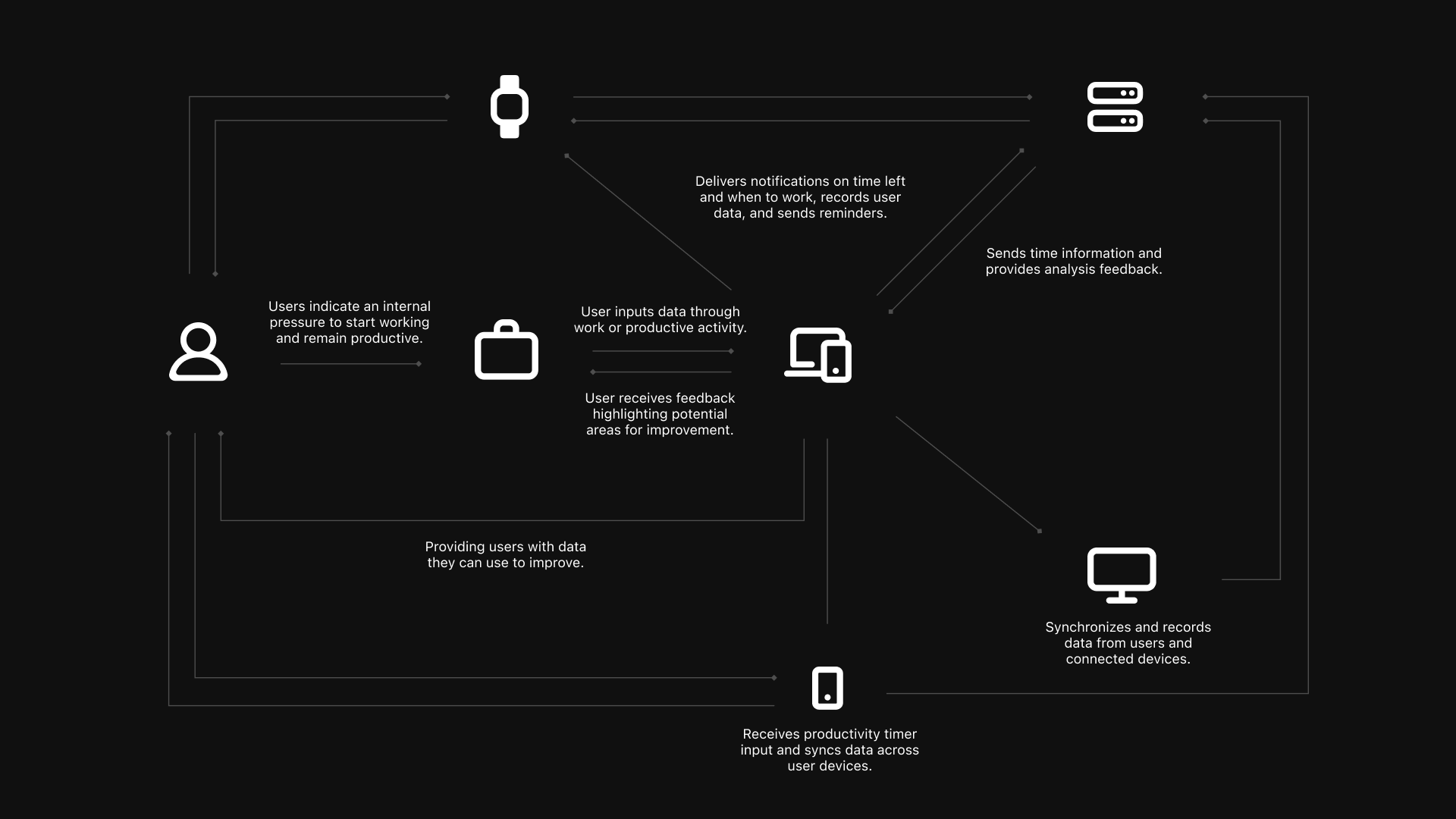 The ecosystem is built around how your actions connect to the entire platform. Whether you're using a wearable device or your desktop computer, every interaction fuels the system that ultimately benefits the user. When you start a study session, Lavender analyzes your activity to provide personalized tips and insights into your habits.
