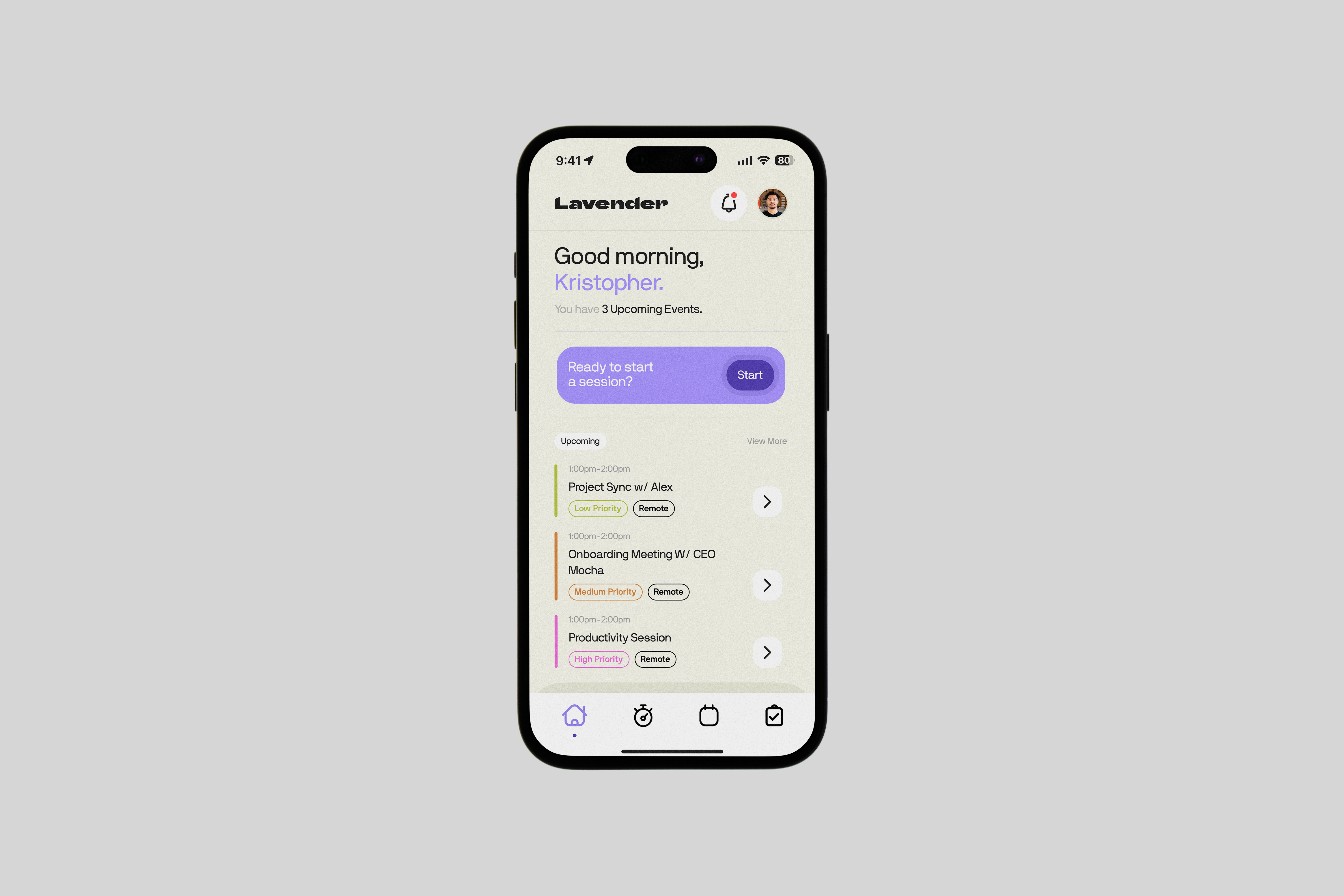 The name and color palette were chosen to reflect that soft, rewarding feeling of a day well spent. The Lavender logo is designed to be friendly and approachable, embodying the satisfaction and relief of a productive day. It's more than just a logo; it's a visual representation of that rewarding feeling of "I actually did it today."